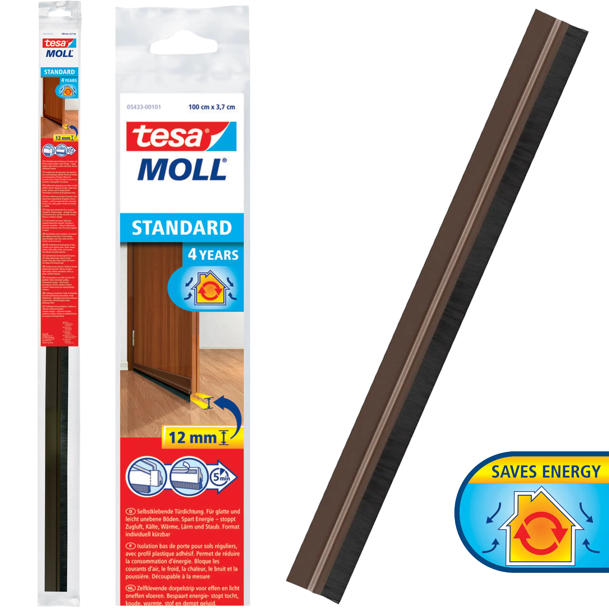 Uszczelka szczotkowa tesamoll® Standard skutecznie chroni wnętrza przed zimnym powietrzem, przeciągami i kurzem, zwiększając komfort cieplny w pomieszczeniach. Nylonowe włosie dokładnie uszczelnia szpary do 12 mm, co pozwala ograniczyć straty energii i zmniejszyć rachunki za ogrzewanie.
