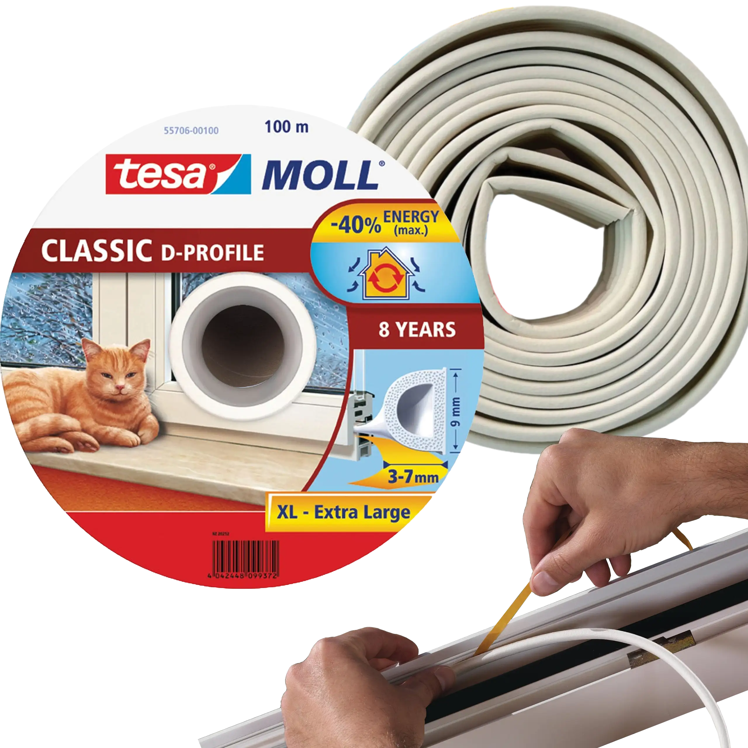 tesamoll® P-Profile jest samoprzylepnym uszczelniaczem okiennym , który montuje się bez dodatkowych narzędzi.