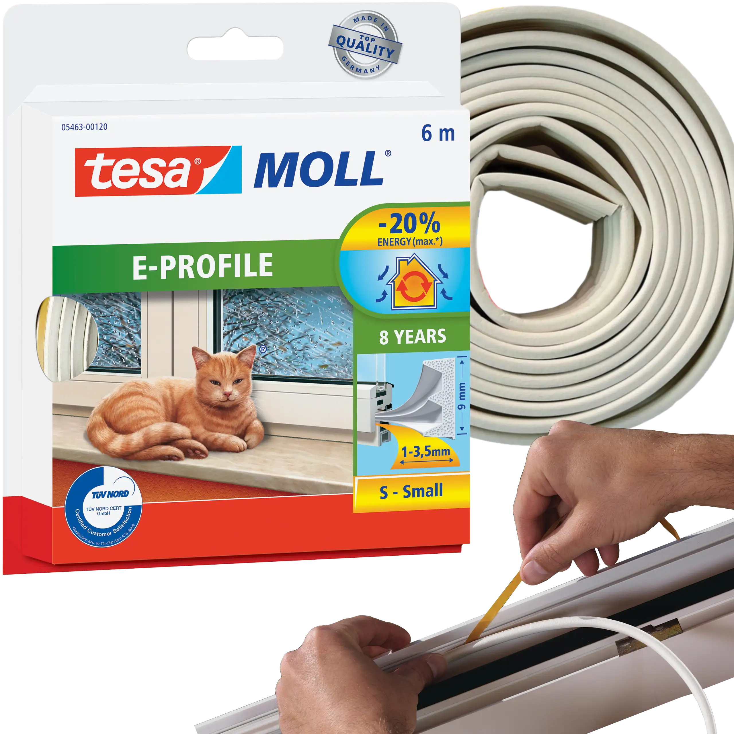 tesamoll® P-Profile jest samoprzylepnym uszczelniaczem okiennym, który montuje się bez dodatkowych narzędzi. Dzięki elastycznej konstrukcji z EPDM gumy piankowej idealnie dopasowuje się do ram, umożliwiając szybkie i precyzyjne zakrycie szczelin.