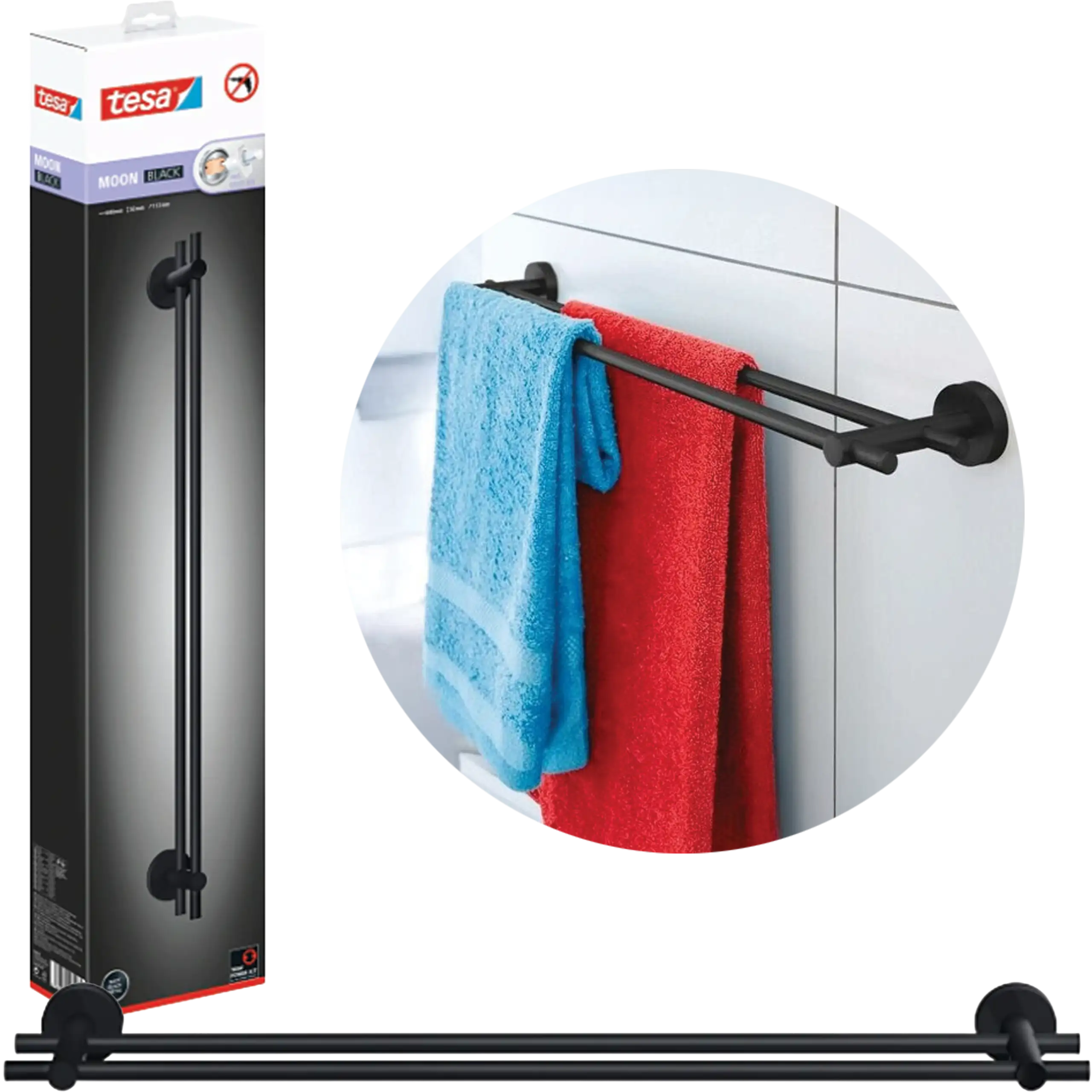 Reling Wieszak Łazienkowy Na Ręczniki Tesa MOON BLACK Podwójny Metalowy