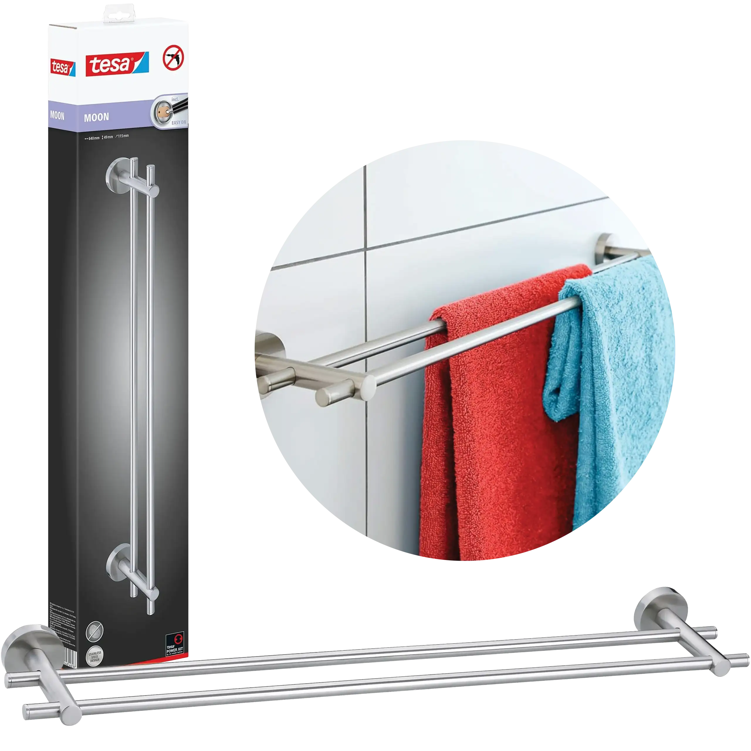 Reling Wieszak Łazienkowy Na Ręczniki Tesa MOON Podwójny Metalowy