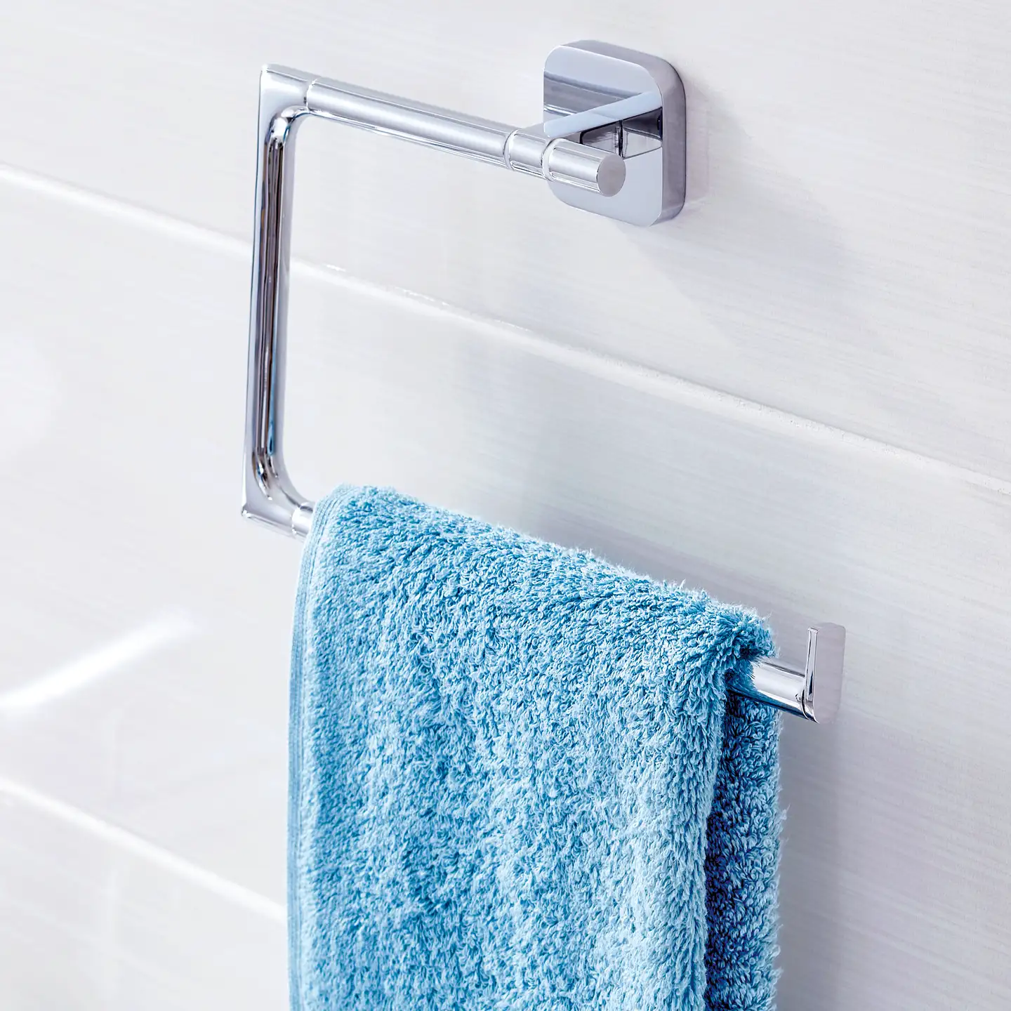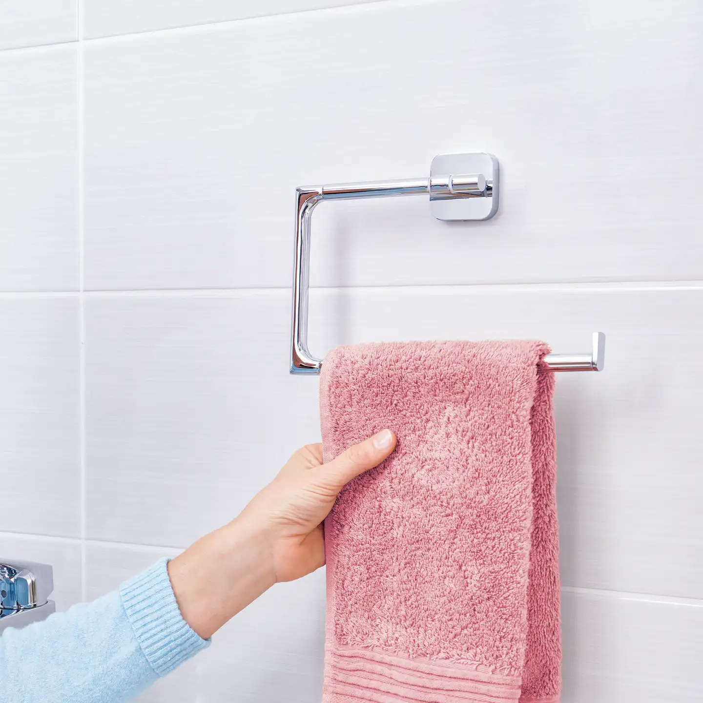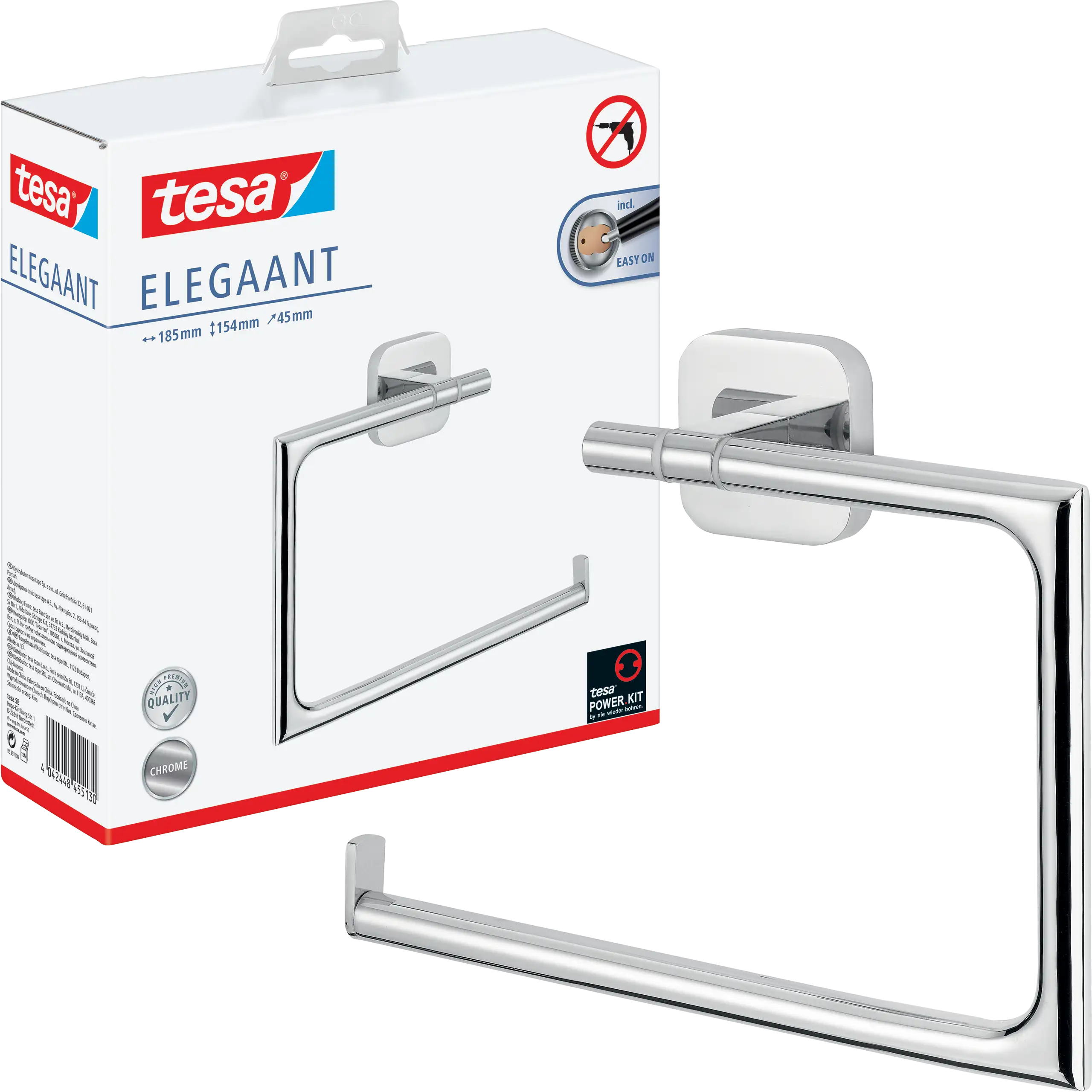 tesa® Elegaant wyróżnia się unikalnym połączeniem prostoty i wyrafinowania . Kwadratowa forma z delikatnie zaokrąglonymi narożnikami i chromowanym połyskiem sprawia, że uchwyt staje się ozdobą każdej łazienki.