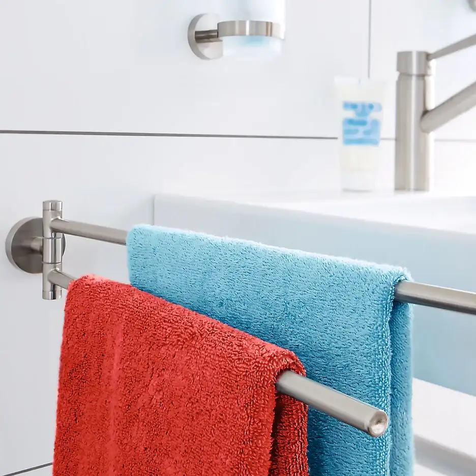 Akcesoria z serii tesa® Moon charakteryzują się okrągłym, subtelnym kształtem i eleganckim wykończeniem ze stali nierdzewnej, na której nie pozostają ślady palców. Dzięki temu zawsze prezentują się estetycznie i pasują zarówno do nowoczesnych łazienek, jak i klasycznych wnętrz. To połączenie praktyczności i ponadczasowego designu, które podnosi komfort codziennego użytkowania.