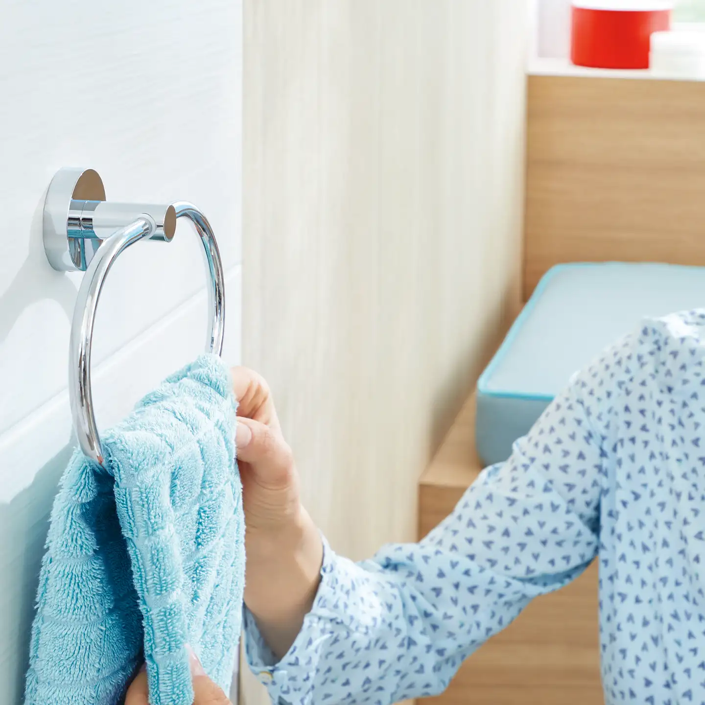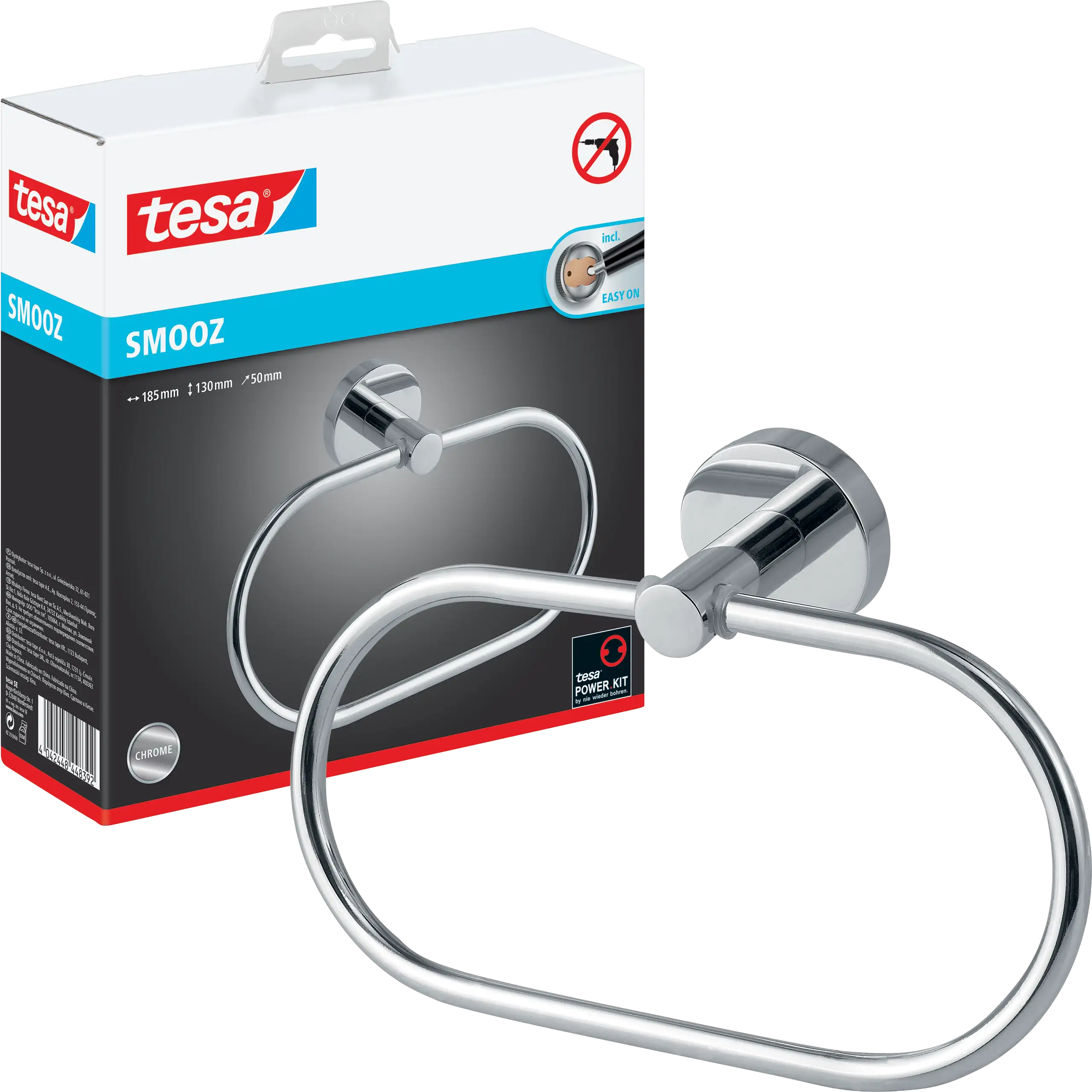 Każdy produkt tesa® Smooz montowany jest za pomocą technologii tesa® Power.Kit, co oznacza instalację bez wiercenia, bez narzędzi i bez ryzyka uszkodzeń powierzchni. Masa klejąca zapewnia pewne i trwałe mocowanie, a po 12 godzinach schnięcia uchwyt czy wieszak jest gotowy do użytku. To wygodne i nowoczesne rozwiązanie do każdej łazienki.